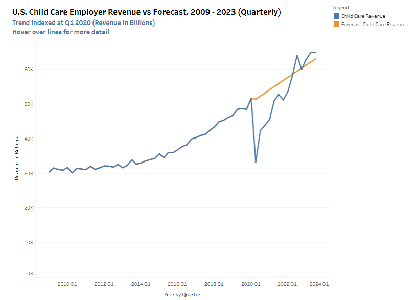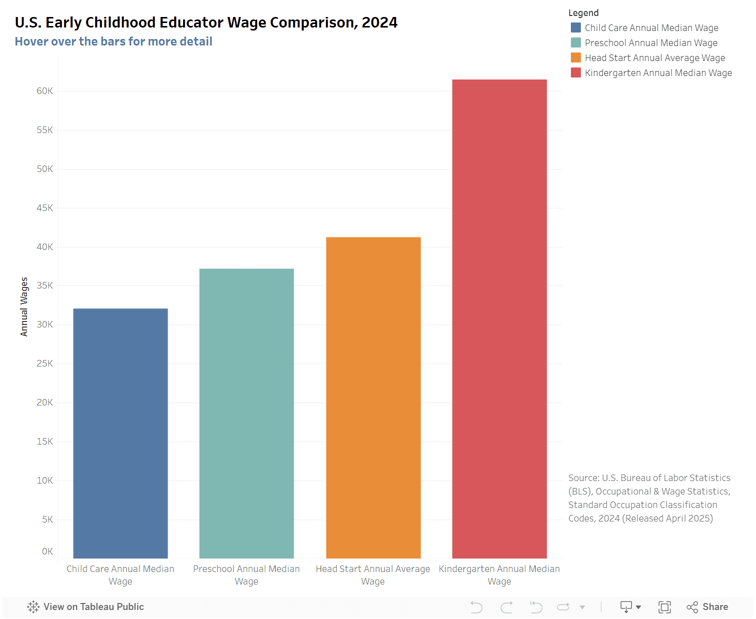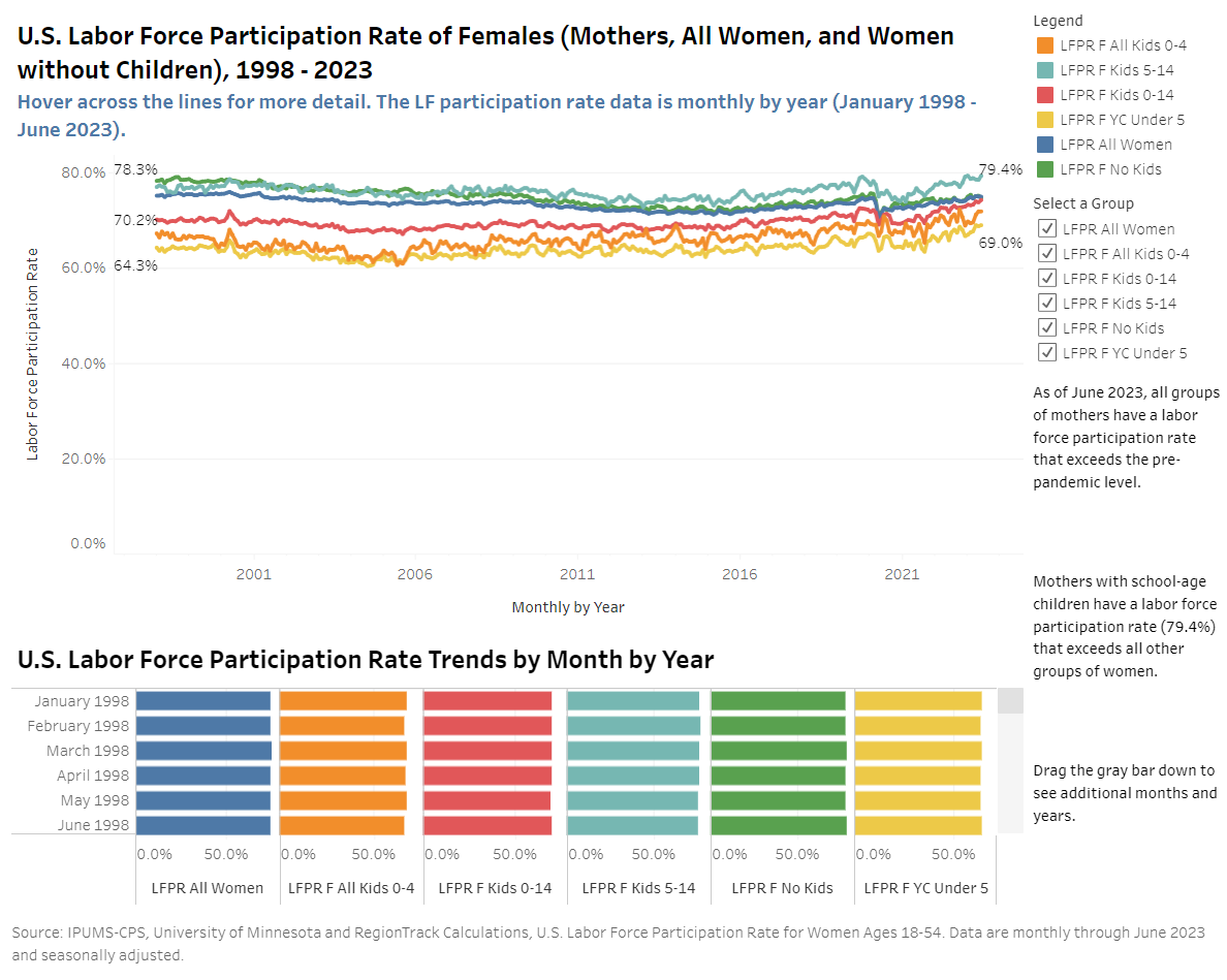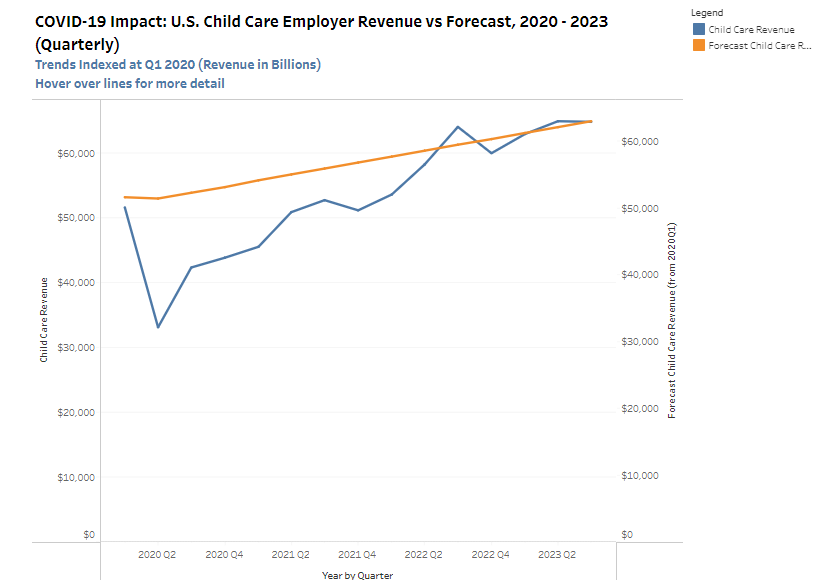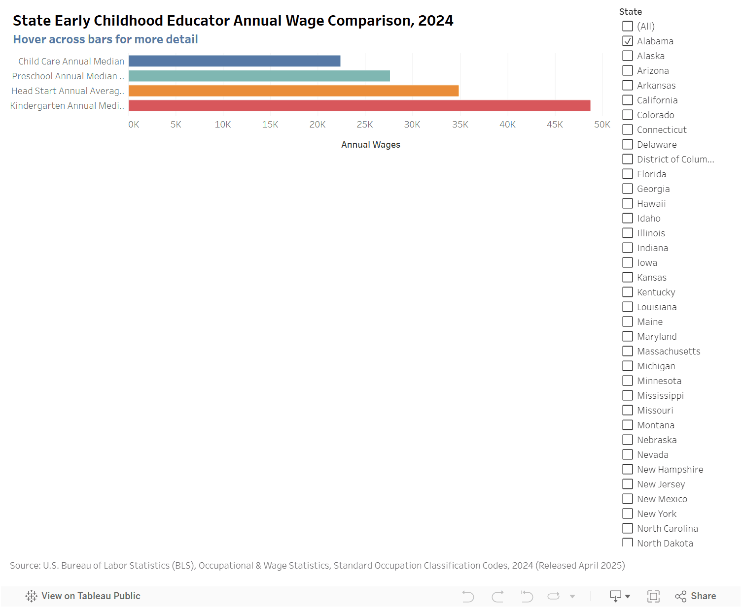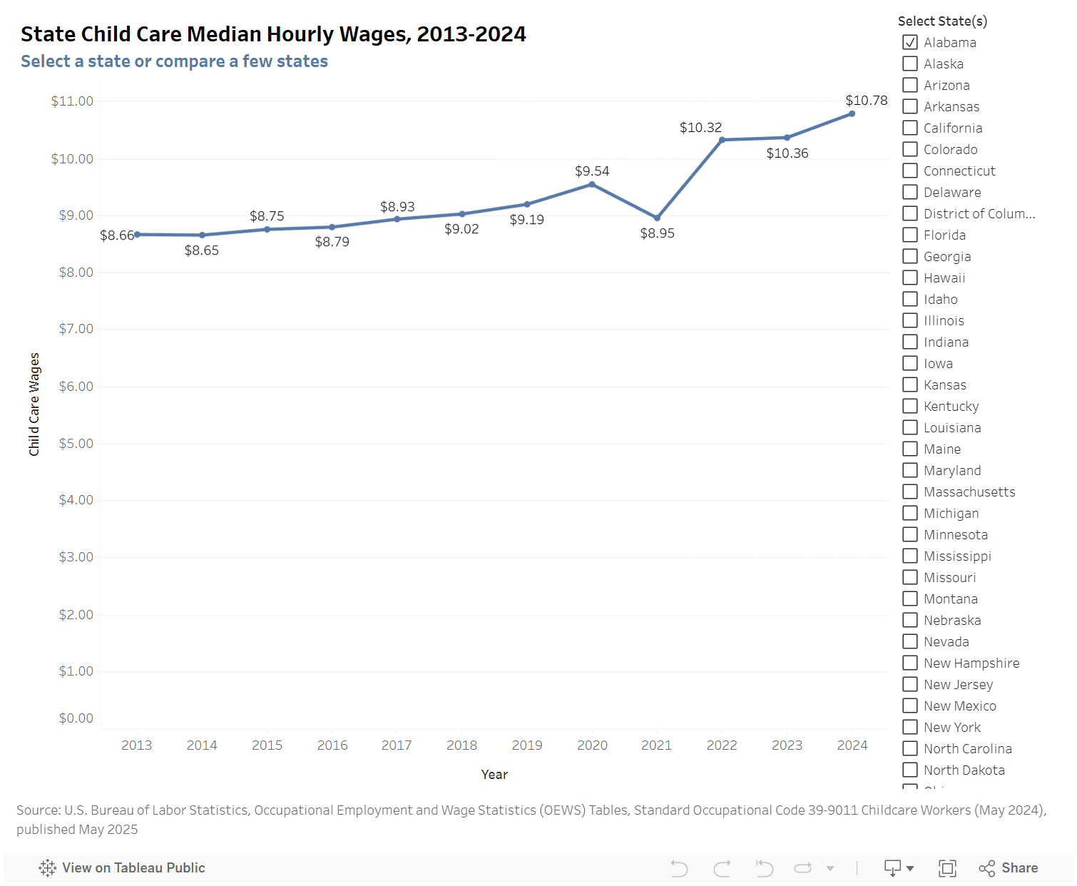 Each dashboard is based on data contained in the Economic Role of Paid Child Care in the U.S. report and is designed to be interactive. Depending upon the individual dashboard, the data can be sorted by year, state (or U.S. average), age of children (e.g., age 14 and younger or under age 5), use of paid care, labor force participation of mothers, share of family income spent on child care, and household income of families using paid care compared to families with children of the same age not using paid care.