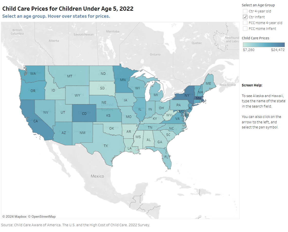 Click on any state from the map or drop down list below to learn more about paid child care usage in each state.