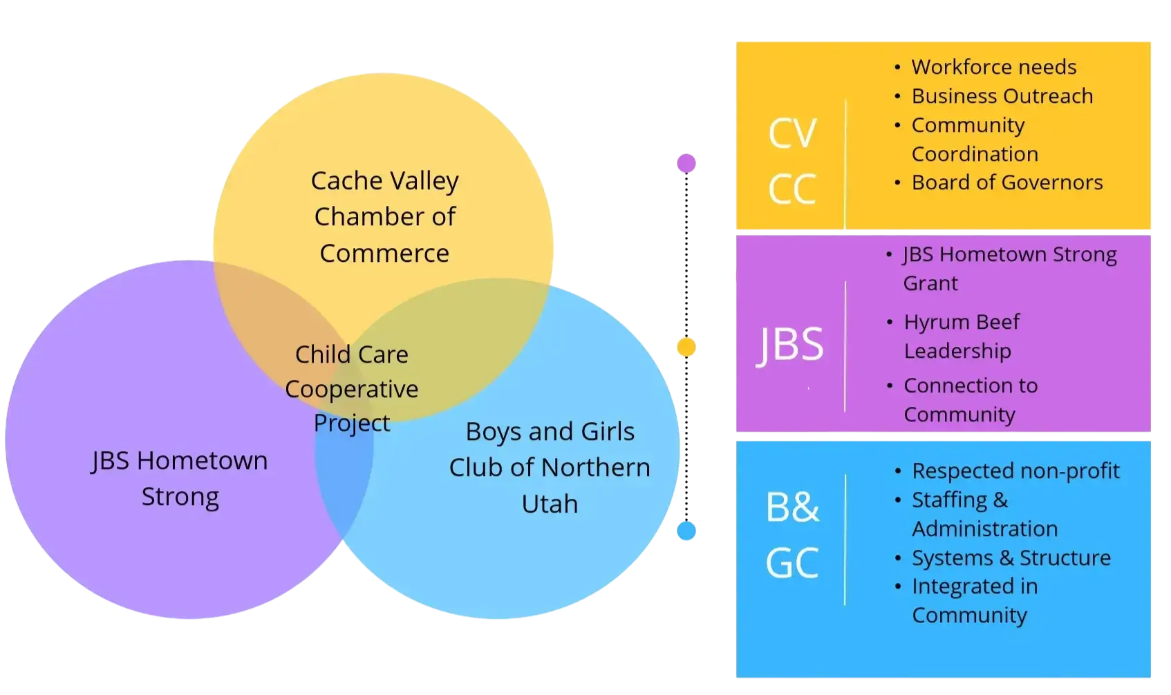 In Utah, the Cache Valley Chamber of Commerce identified access to child care as a leading challenge for employers throughout the area. There was a particular concern about nontraditional hours since many employers in the community are manufacturing companies with shift work. The local chamber partnered with the Cache County Office for Economic Development to send a child care survey to employers in August 2022. 80% of employers said child care was a challenge for their employees; 53% said they had employees quit or take extended leave to care for their children. The Cache Valley Chamber partnered with JBS, a meat processing company, and the Boys & Girls Club of Northern Utah to open 3 new child care centers in August and September of 2024. Read more here.